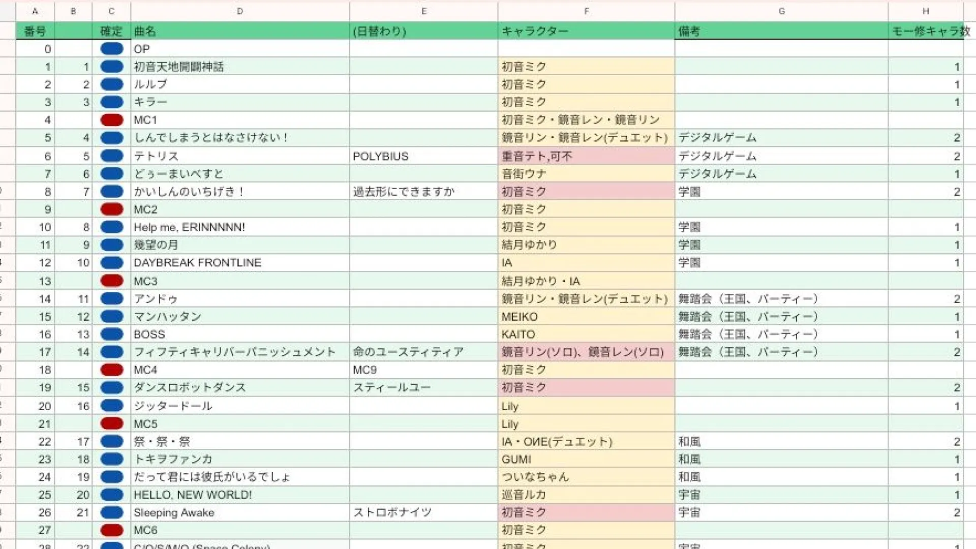 MIKUECなどVLLで行われるライブで演奏される曲のセットリストを作り、演出を考える班です。